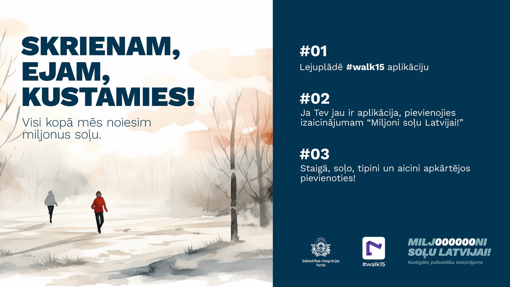 Sabiedrības Integrācijas fonds aicina Latvijas iedzīvotājus iesaistīties veselīga dzīvesveida izaicinājumā "Miljoni soļu Latvijai"!